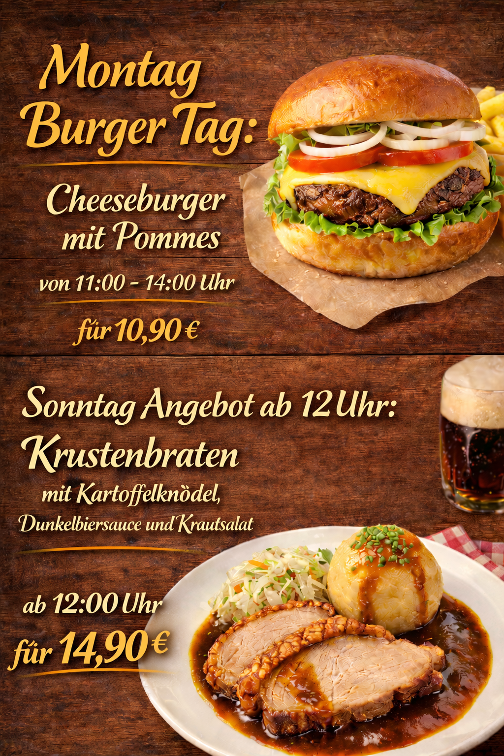 Unser absolutes Highlight: Der Burger! Saftiges Fleisch, frische Zutaten und hausgemachte Saucen machen jeden Bissen zu einem Erlebnis. Ob klassisch, vegetarisch oder mit außergewöhnlichen Toppings – probieren Sie unsere Burger-Kreationen und finden Sie Ihren Favoriten.